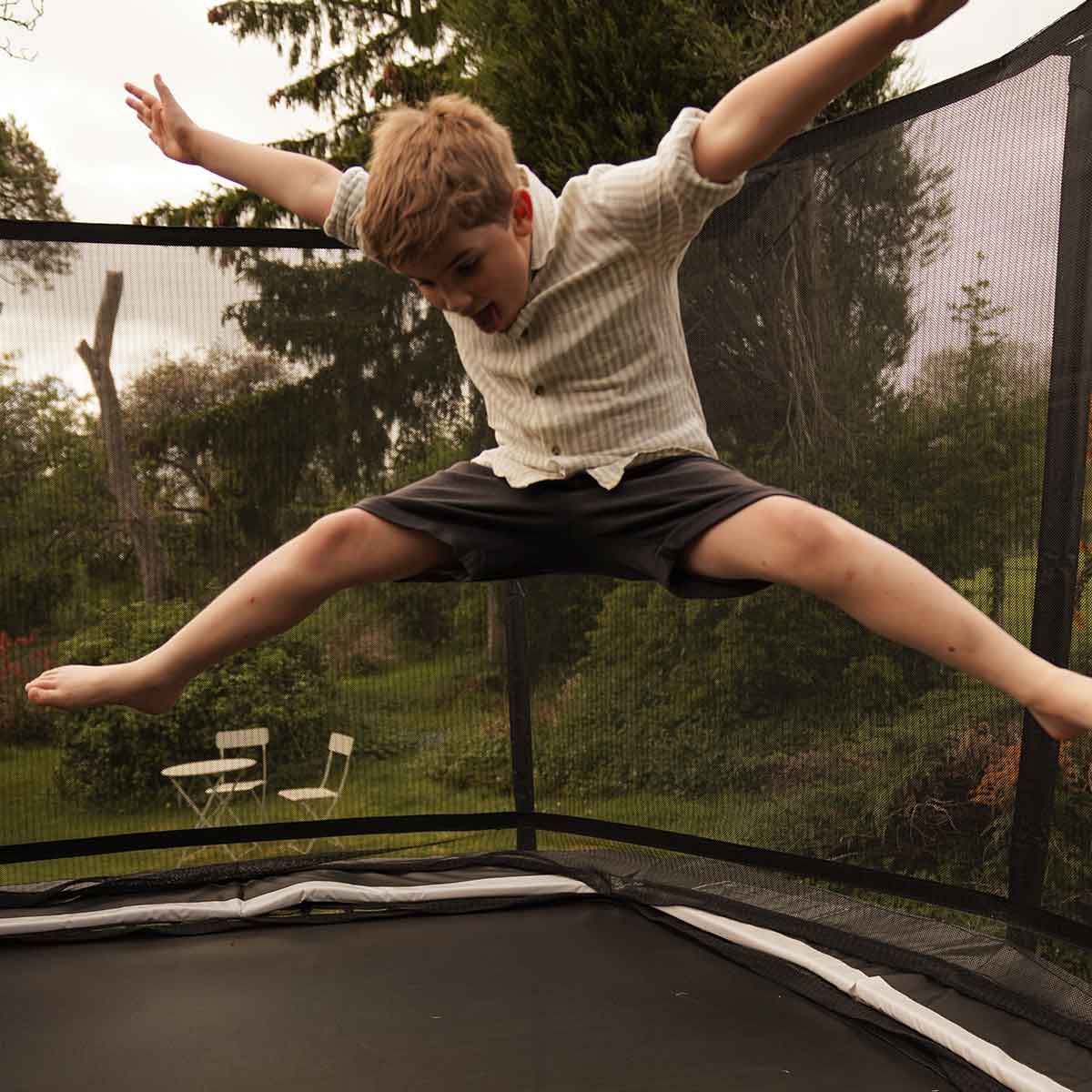 Sikkerhet er ekstremt viktig når vi utvikler produktene våre. Våre trampoliner er utstyrt med innovative sikkerhetssystemer og funksjoner som setter hopperens sikkerhet først og beskytter hopperen mot alle harde deler av trampolinen, som fjærene og rammen.