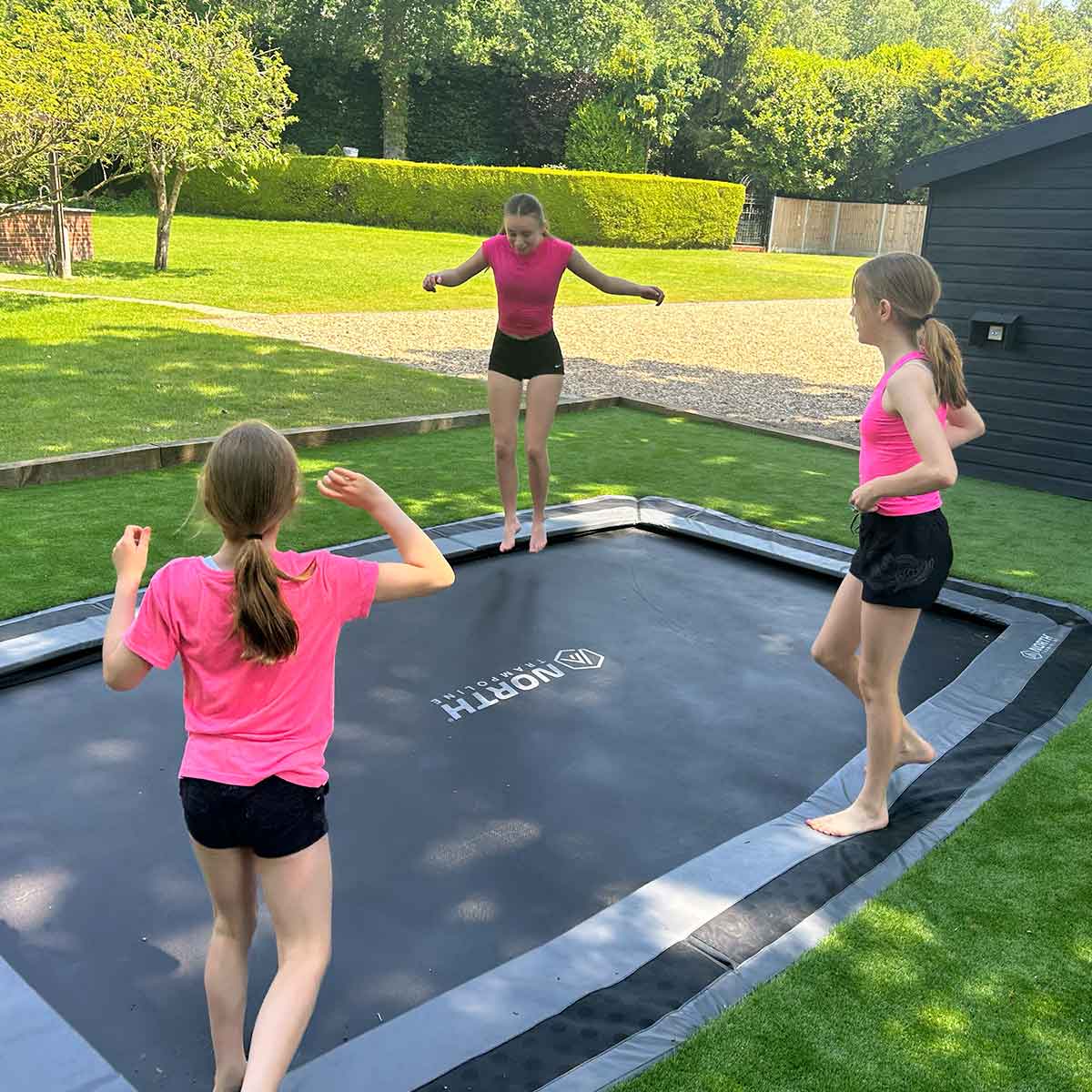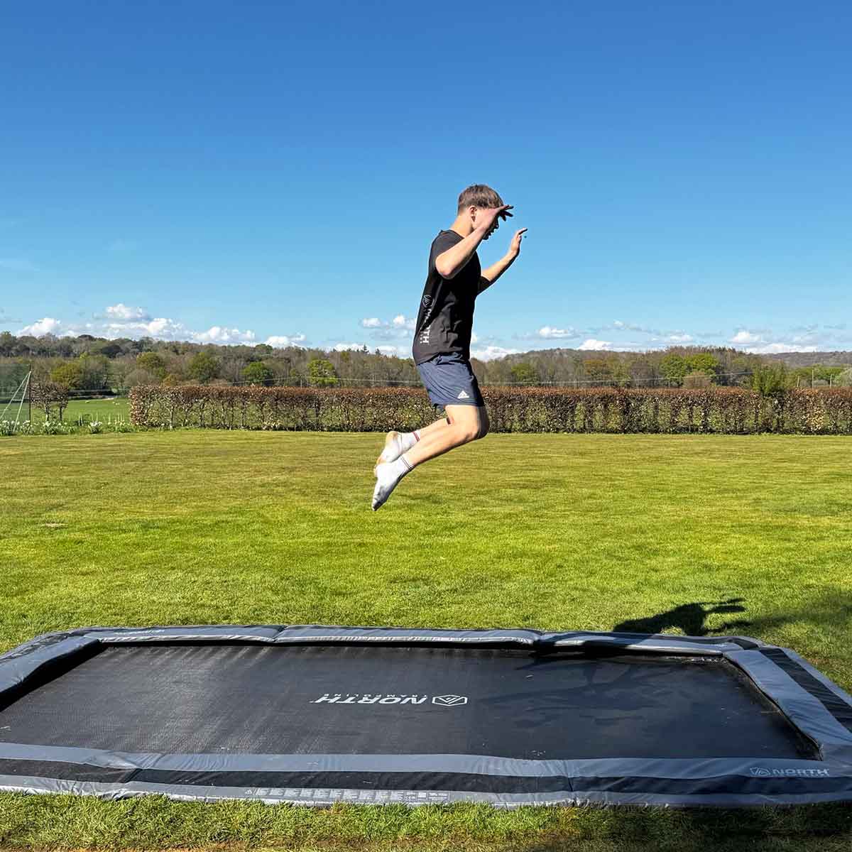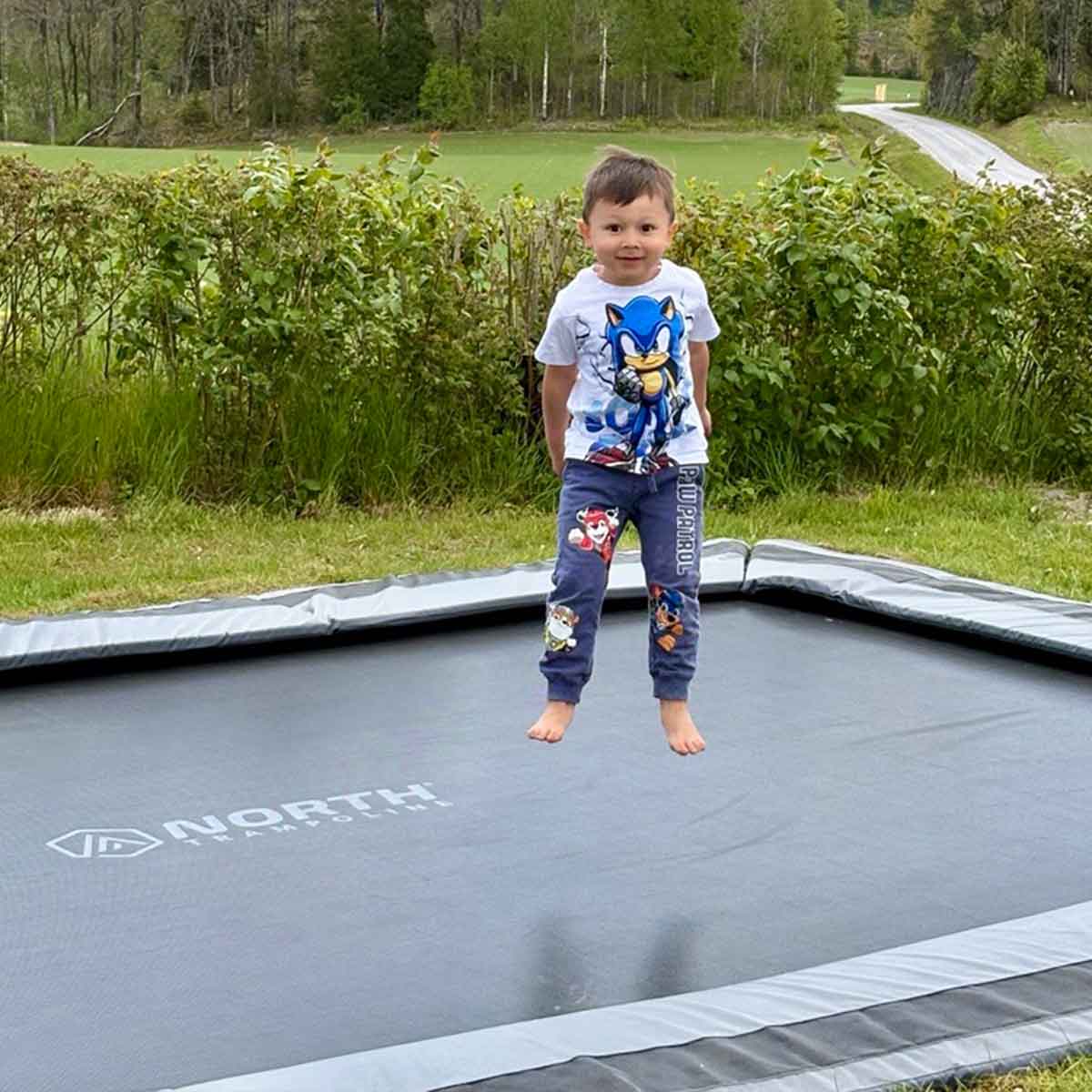 "Super fornøyd med vår North Trampoline. Skikkelig kvalitet og den mest behagelige og morsomme trampolinen vår familie har prøvd."