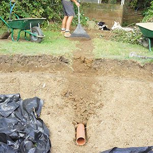 Dette er kun mulig hvis du kan legge et 100 mm dreneringsrør fra bunnen av gropen til et lavere punkt i hagen, f.eks. til en grøft.