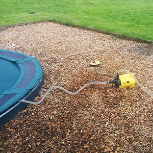 Det andre alternativet er å vente og se om du faktisk får et problem. Det er enkelt å få tilgang til gropen etter at trampolinen er installert – bare fjern kantbeskyttelsen og hoppeduken. Alle alternativene nedenfor kan gjøres i etterkant, så ofte er det best å vente og se.
