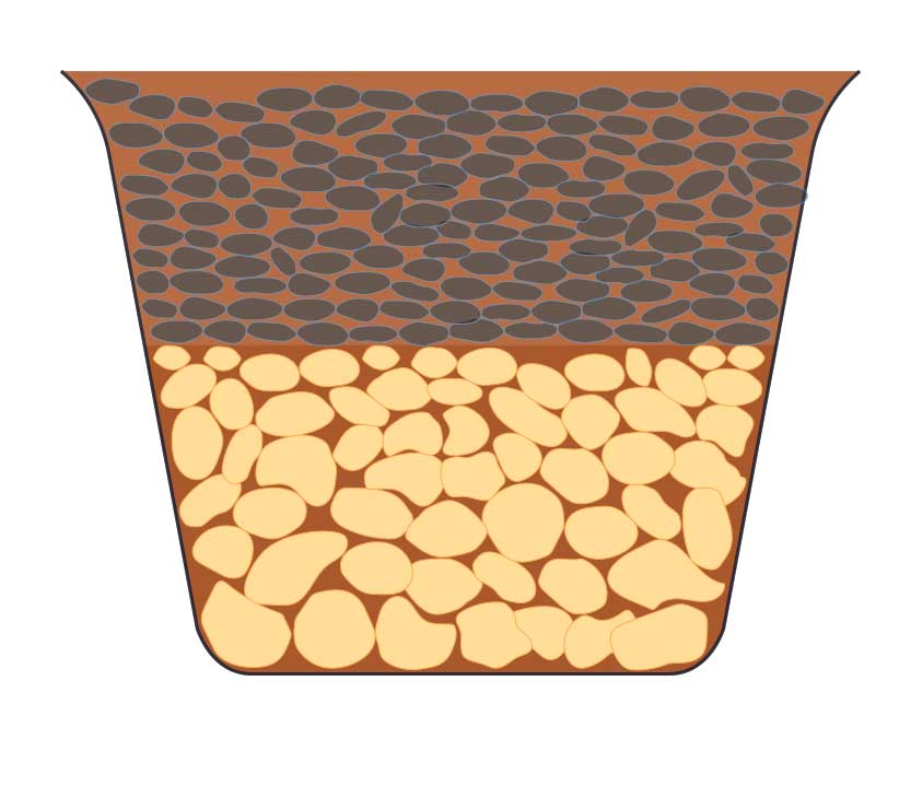 I følge diagrammet er en dreneringskasse en grop fylt med en kombinasjon av stein, singel eller tegl som hjelper regnvann å renne bort. I bunnen av gropen du graver til trampolinen, lager du en grop på cirka 600 × 600 × 600 mm og fyller bunnen med større biter av stein eller tegl og toppen med mindre biter.