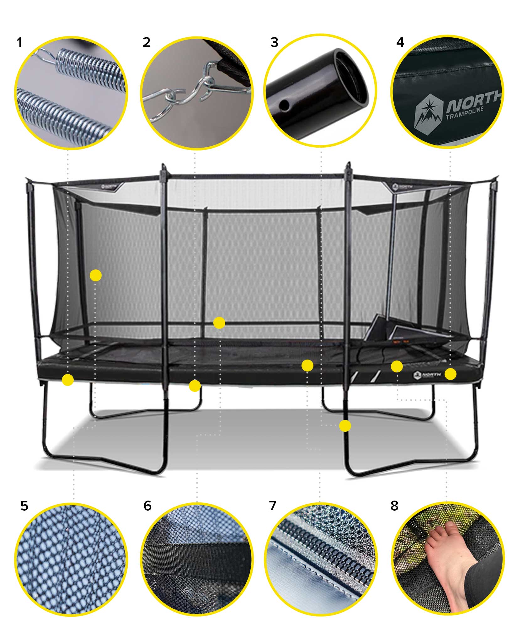 Selv om dette er vår inngangsmodell, er Pioneer overlegen de fleste trampoliner du kan kjøpe og er skapt med all den håndverksmessige kvaliteten som kjennetegner alle North Trampoliner.