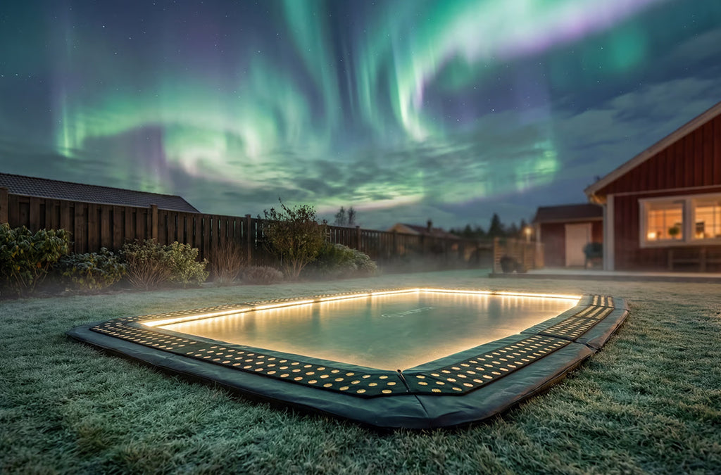 Enkel å installere: Monteres på trampolinens indre ramme (jordvegger), skjult under kantputer og hoppeduk for et rent og integrert uttrykk.